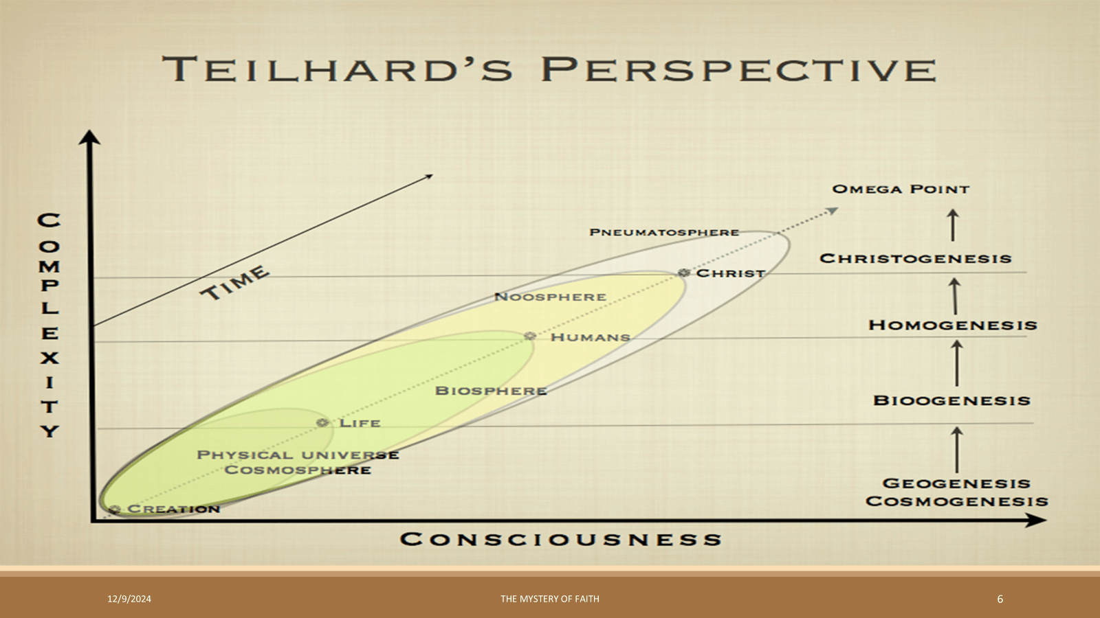 Mystery in the physical universe — Mystery presupposes that there is a human consciousness to be aware that it exists at all. How can matter be a mystery? To whom? Humans? Matter existed before there was even an earth on which humans could reason and choose good from evil. Mystery in the physical universe, which, according to the Teilhard map in Figure 1, is all matter from creation up to the entry of Homo Sapiens into a new paradigm, reason, but also the ability to choose beyond the behavioral dictates of inorganic and organic lifeforms, is beholden to the laws of nature. As humans use their mental universe to develop a view of what is out there, we use human mental capacities to do that. Reason and the ability of individuals to choose what is meaningful for them (good or evil) without retribution is a hallmark of being human. The mental universe looks at the physical universe and can ask interrogatory questions about what is out there and what makes up matter. Nature conforms to the laws and rules that govern its activity. The mystery to me is who told, regardless of the laws in play, and which guides all reality without being self-aware? There is so much we don’t know about the dynamics of space, time, matter, and evolution that we are just at the beginning of understanding what makes up reality, and even less about how it all fits together.